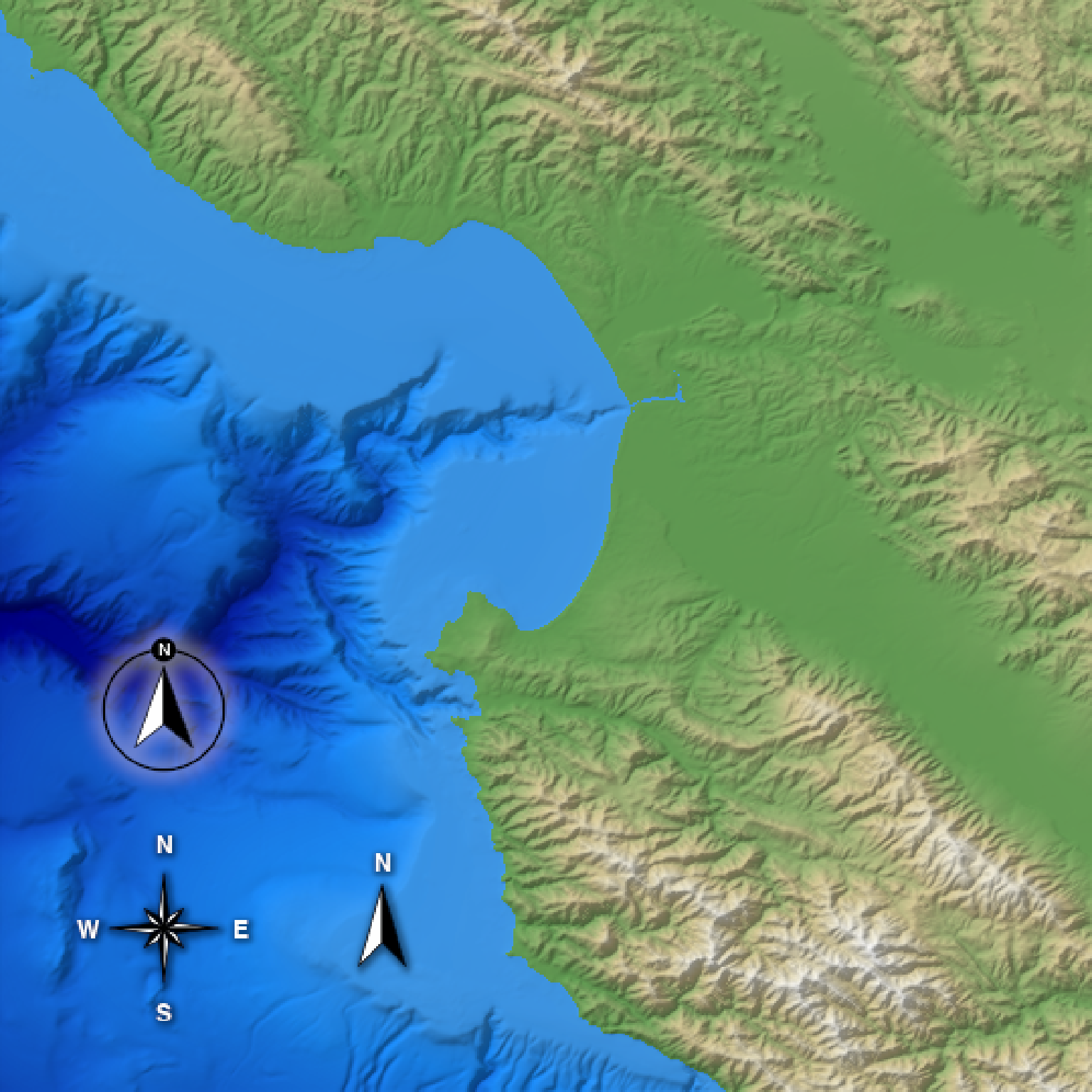 add_overlay(generate_compass_overlay(heightmap = montereybay, x = 0.45, y=0.45,