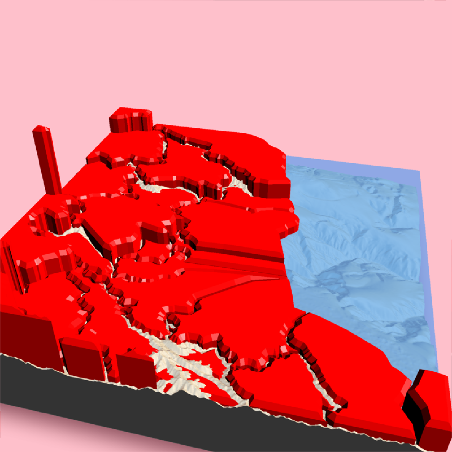 render_beveled_polygons(mont_county_buff, flat_shading = TRUE, heightmap = montereybay,